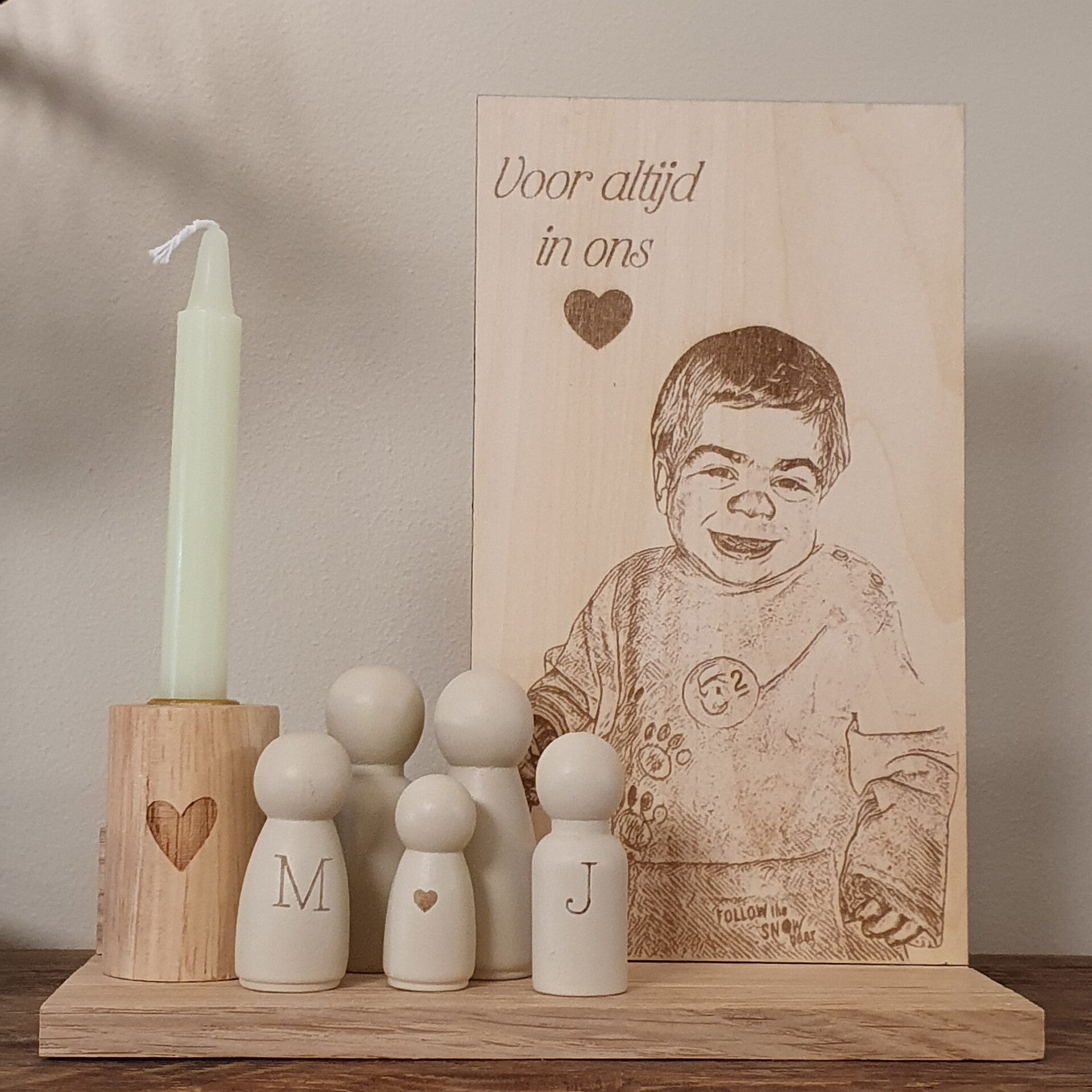 Een naam, datum, foto of korte tekst wordt zorgvuldig gegraveerd om een blijvende herinnering te creëren.